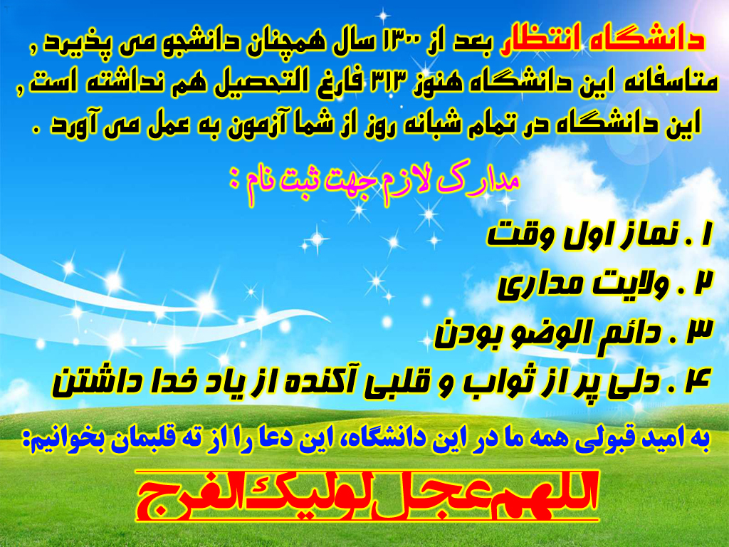 بهای استفاده از این محتوا اهداء سه صلوات برای سلامتی آقا امام زمان (عج) و قرائت فاتحه به روح عموی شهیدم ، شهید غلامرضا زهره منش و نوه نوزادش محمد امین زهره منش می باشد .